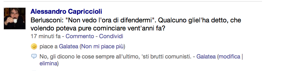 Cioè, fammi capire: auspichi un clima del genere? Se avessi potuto avresti tirato anche tu monetine ai tempi? Davvero ti pare normale l’atteggiamento (non è il termine più azzeccato ok) di alcune procure – una in particolare – nei confroni di Berlusconi?