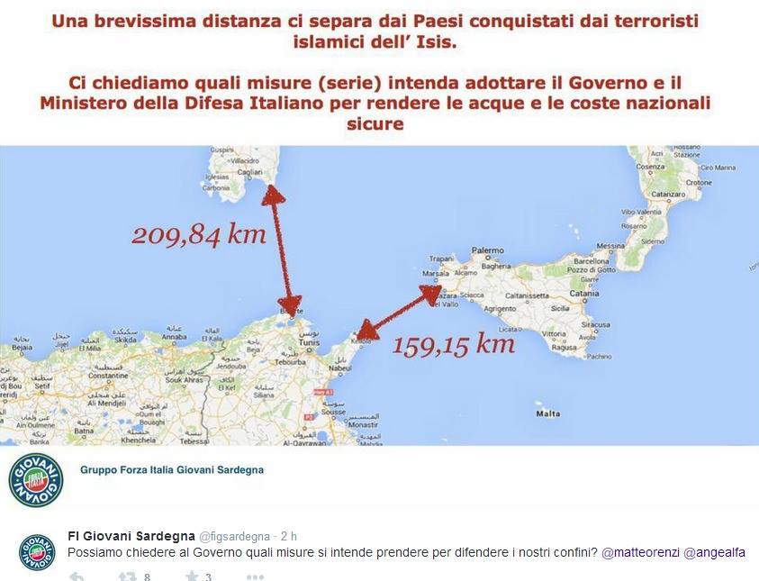 Se non ricordo male la Tunisia è l’unico paese del nord Africa che si è dato uno stato democratico dalla primavera araba. I forzitalioti nostrani, poi, si sono dimenticati di Pantelleria, distante solo 70 km dalla Libia, pardon, Tunisia.