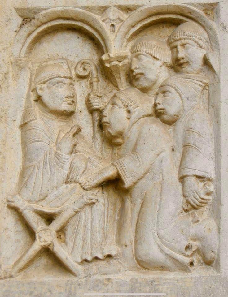 Foto: Portale dell’abazia di Nonantola, Stefano II impartisce la benedizione tratto da Wikipedia #accaddeoggi #medioevo #storiamemdievale #carlomagno #franchi #longobardi #storia #26marzo